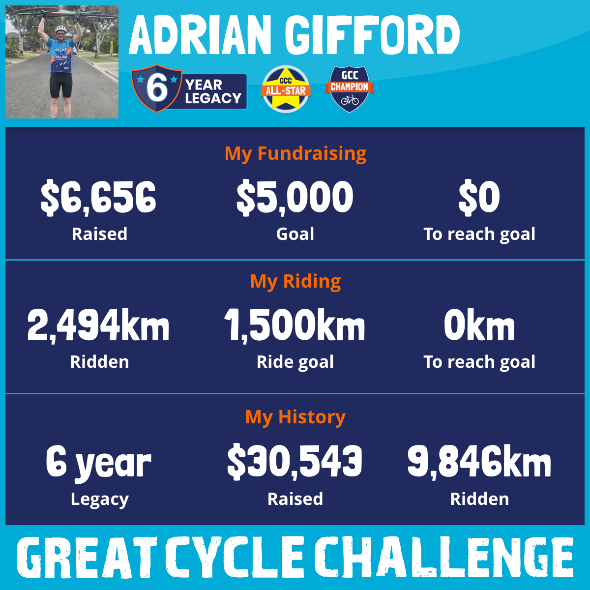 3,115 km Ridden$6,656 Raised2026