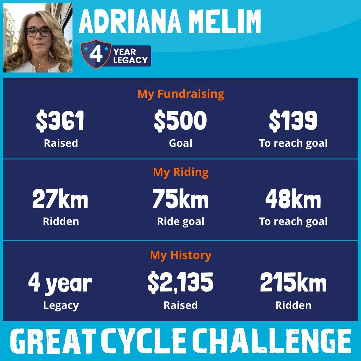 And so I am riding and raising funds to support the Children's Medical Research Institute to continue their work into the prevention, diagnosis, treatment and finding a cure for childhood cancer.