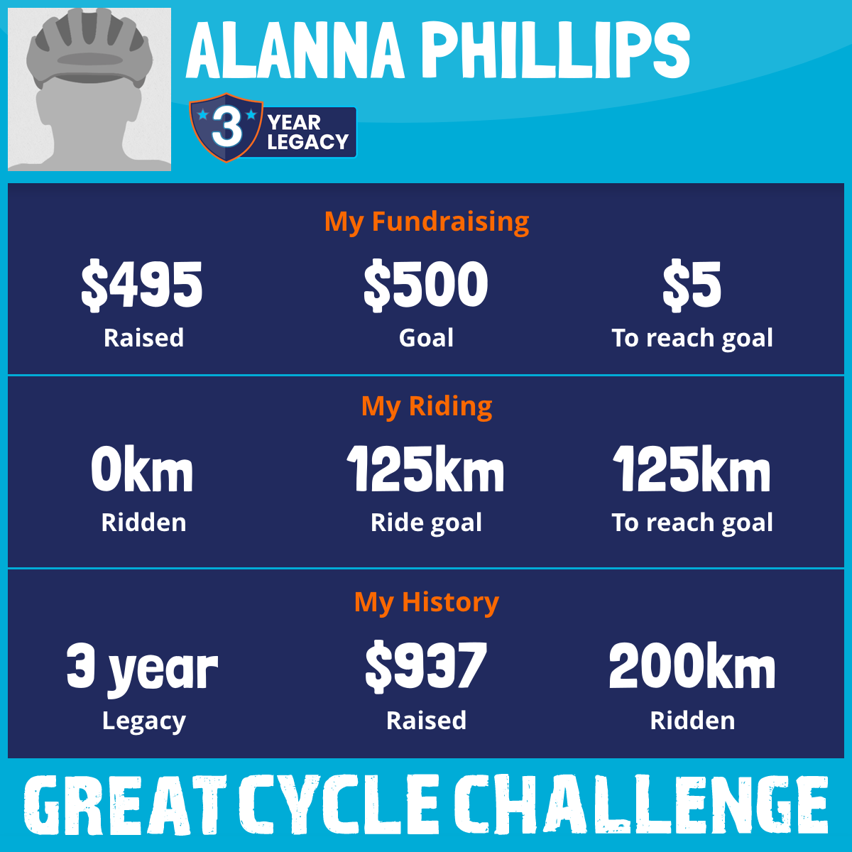 And so I am riding and raising funds to support the Children's Medical Research Institute to continue their work into the prevention, diagnosis, treatment and finding a cure for childhood cancer.