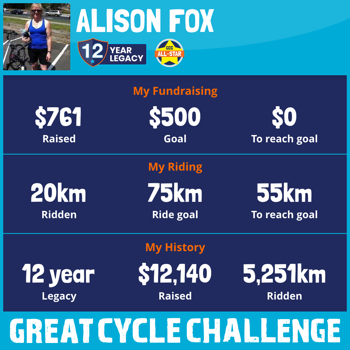 And so I am riding and raising funds to support the Children's Medical Research Institute to continue their work into the prevention, diagnosis, treatment and finding a cure for childhood cancer.