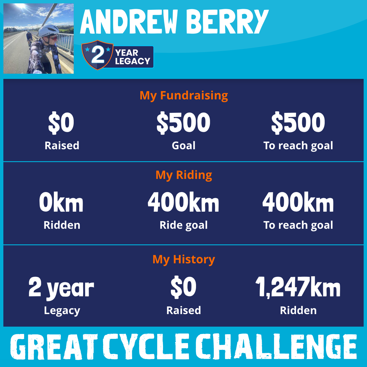 I am riding 400 km in memory of my mum, Andrea Berry. Please sponsor me and support my challenge to fight kids' cancer and save little lives.