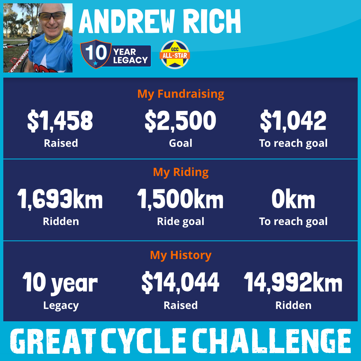2,345 km Ridden$1,458 Raised2026