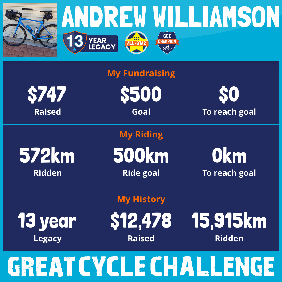 623 km Ridden$747 Raised2026