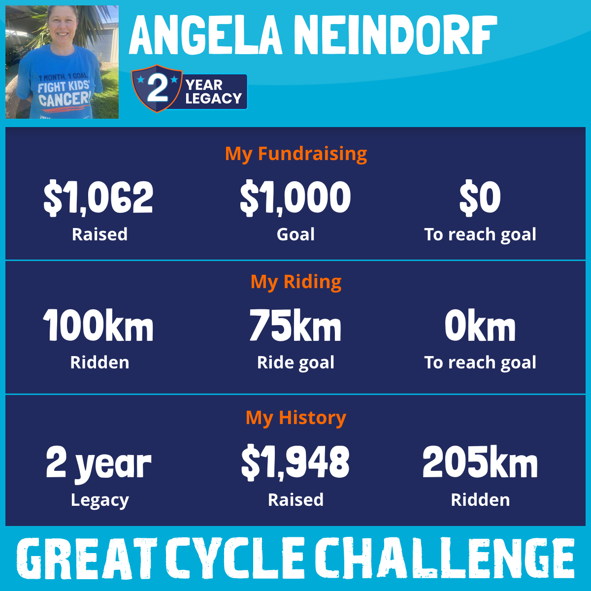 100 km Ridden$1,062 Raised2025
