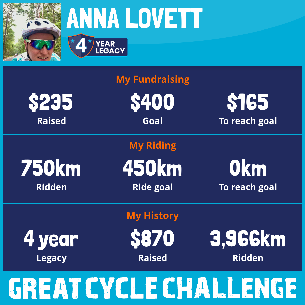 And so I am riding and raising funds to support the Children's Medical Research Institute to continue their work into the prevention, diagnosis, treatment and finding a cure for childhood cancer.