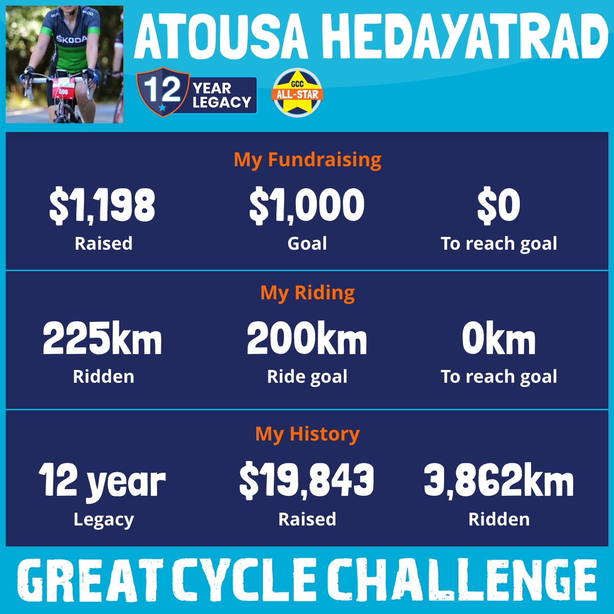 I am riding 200 km in memory of Mina and Morteza. Please sponsor me and support my challenge to fight kids' cancer and save little lives.
