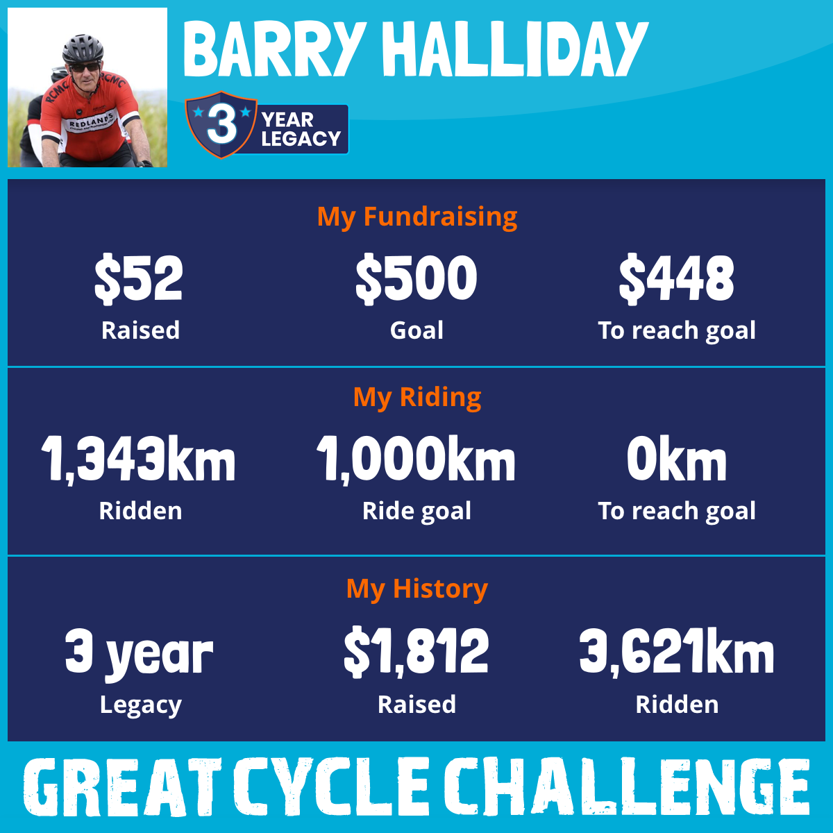 2,051 km Ridden$52 Raised2026