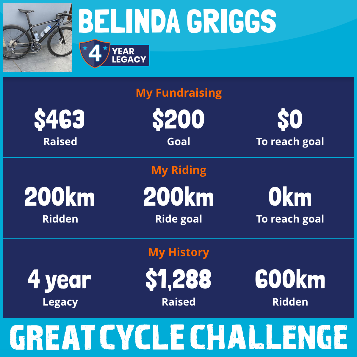 200 km Ridden$463 Raised2025