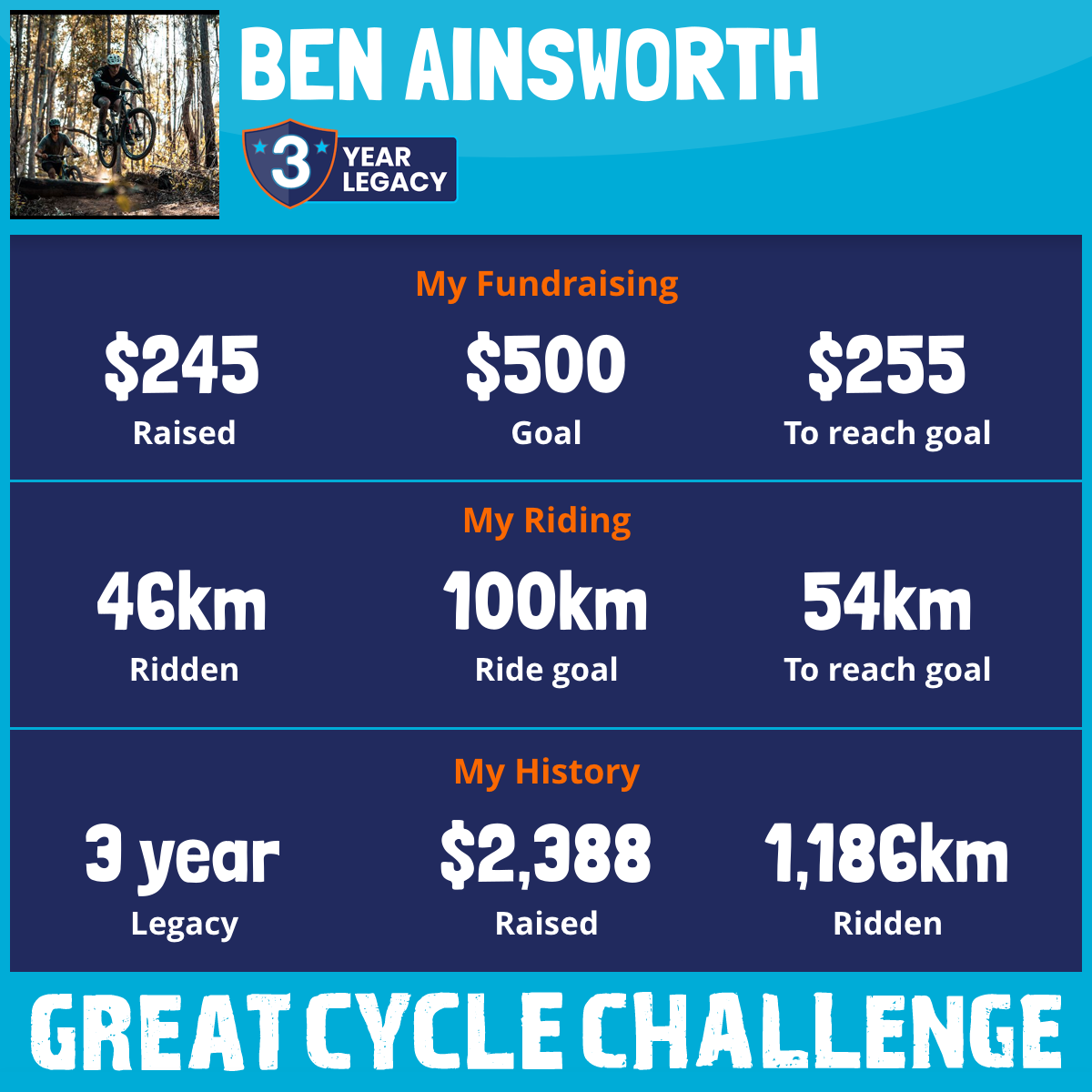 1,140 km Ridden$2,029 Raised2020