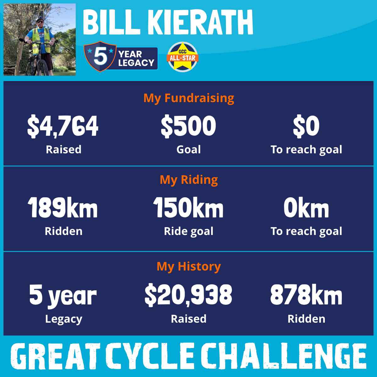 189 km Ridden$4,764 Raised2026