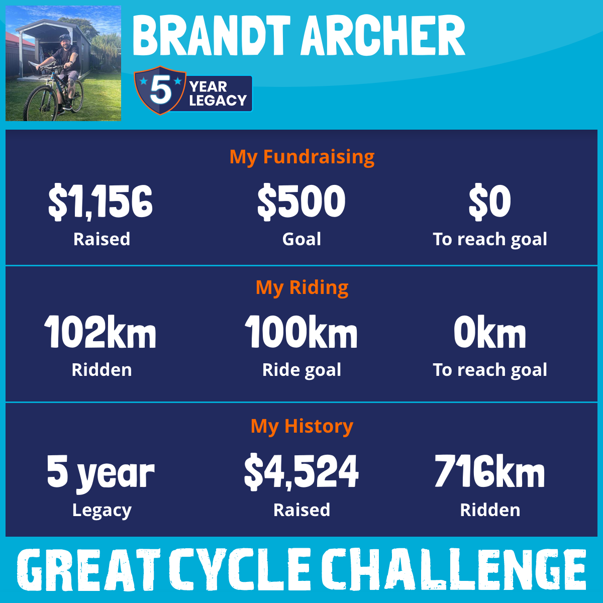 104 km Ridden$1,156 Raised2026