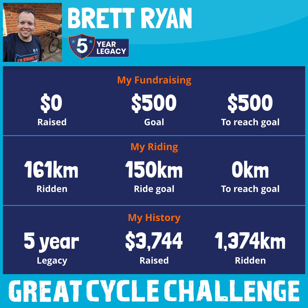 This October, after running the Melbourne Marathon for Cure Cancer, I'm taking part in the Great Cycle Challenge to fight kids' cancer!