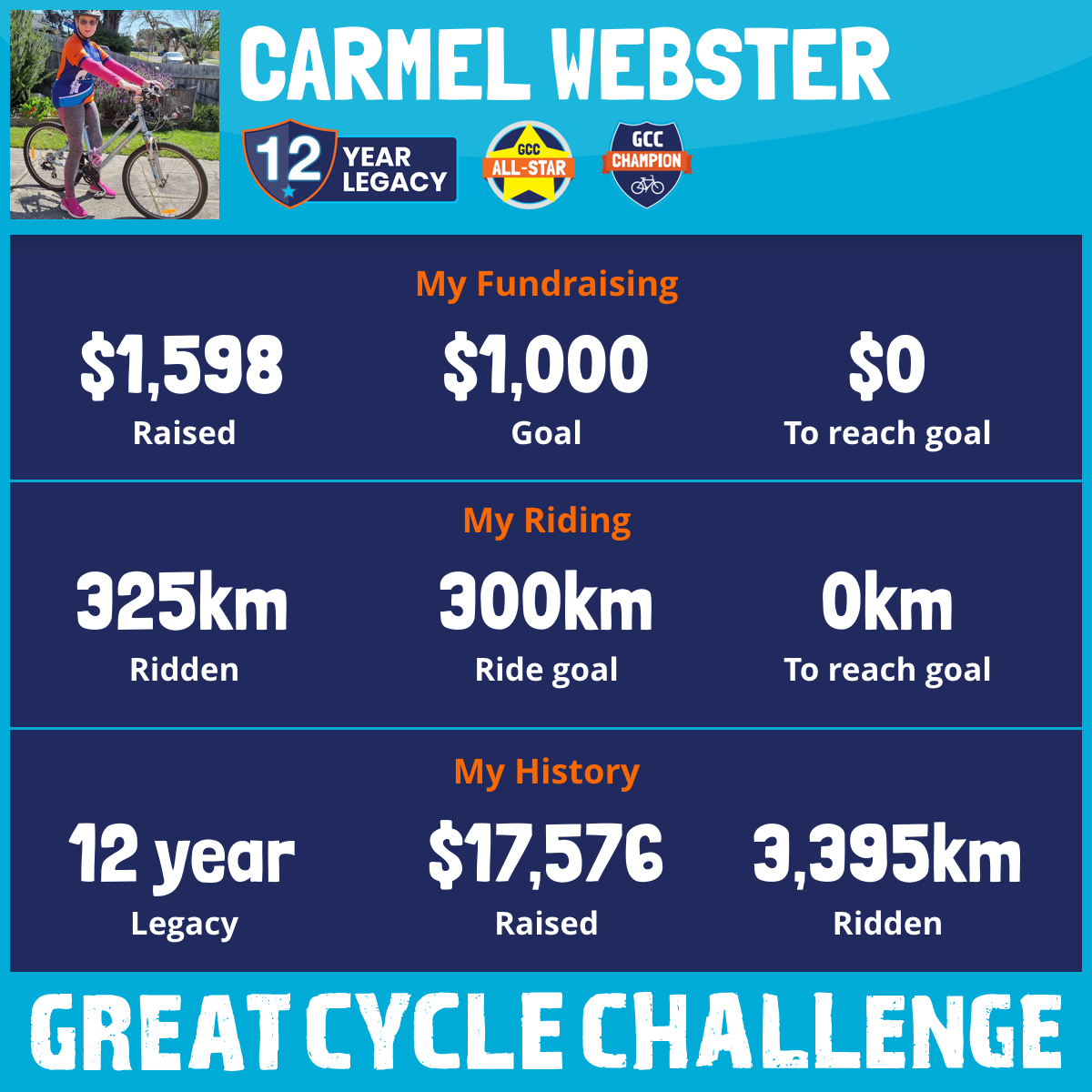 325 km Ridden$1,598 Raised2026
