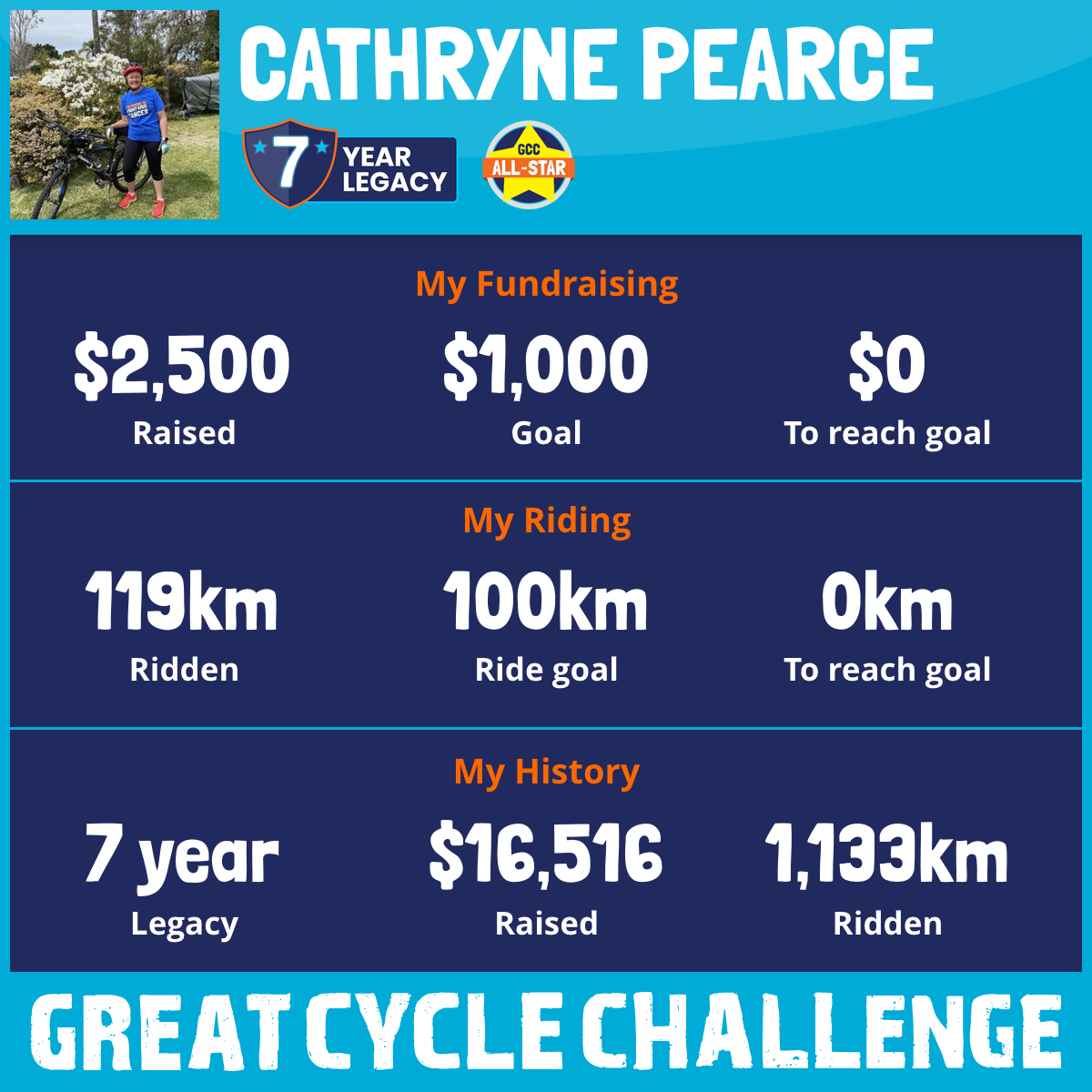 119 km Ridden$2,500 Raised2025