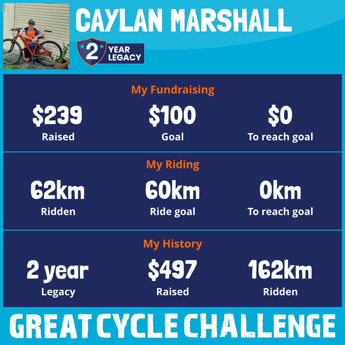 62 km Ridden$239 Raised2026