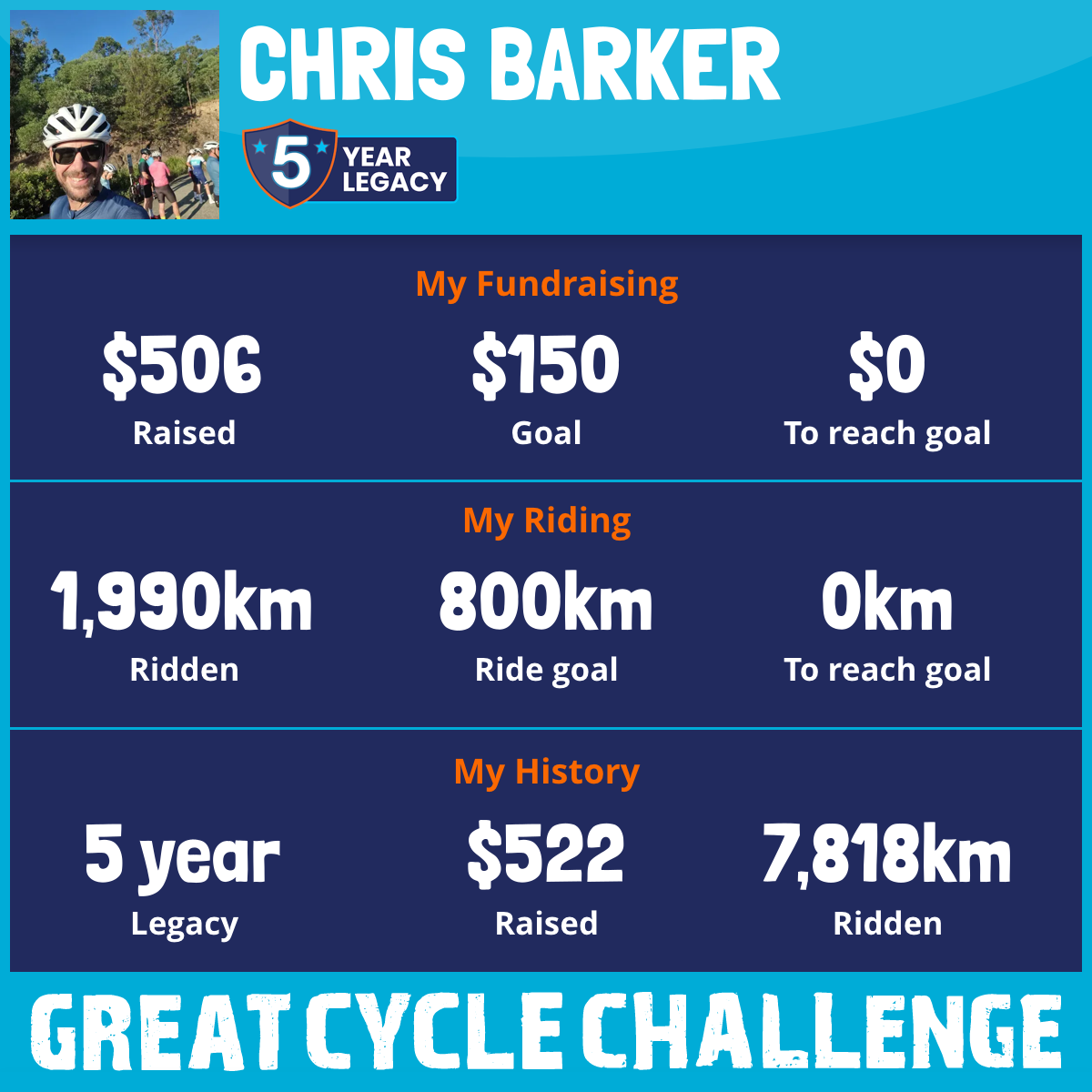 3,084 km Ridden$506 Raised2026