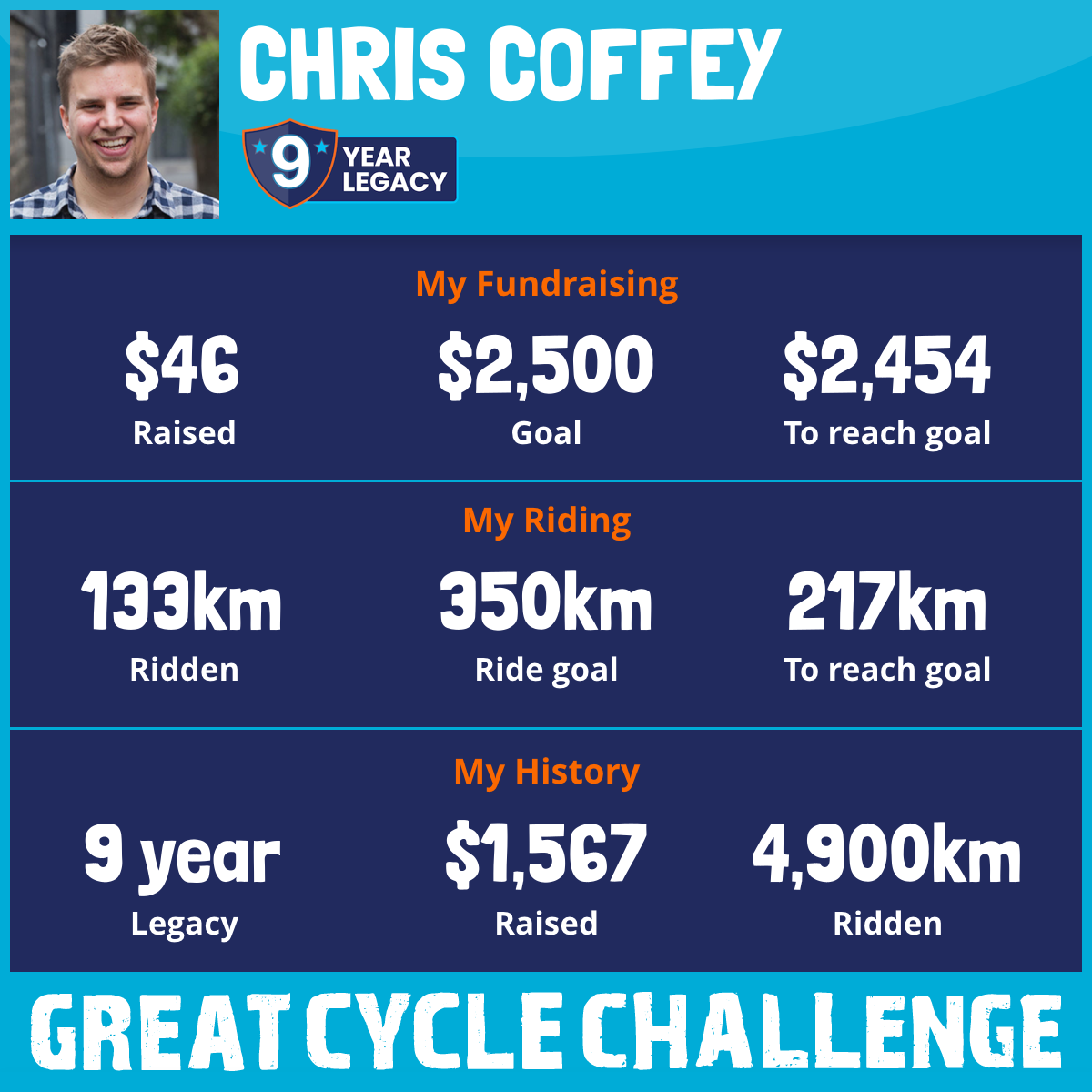 This October, I am taking part in the Great Cycle Challenge to fight kids' cancer. Because right now, cancer is the largest single killer of children from disease in Australia – over 600 children are diagnosed with cancer every year and sadly, 3 die every week.