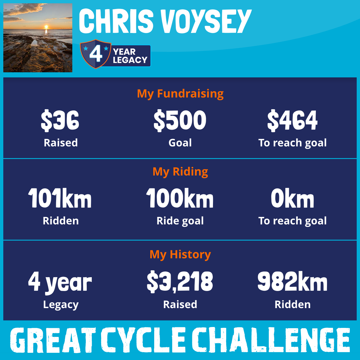 105 km Ridden$70 Raised2018