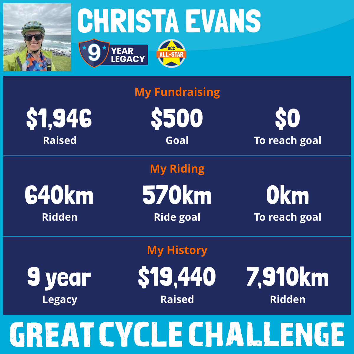 708 km Ridden$1,946 Raised2026