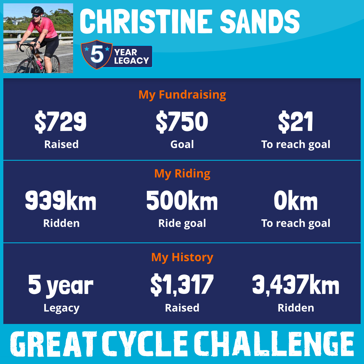 939 km Ridden$729 Raised2025
