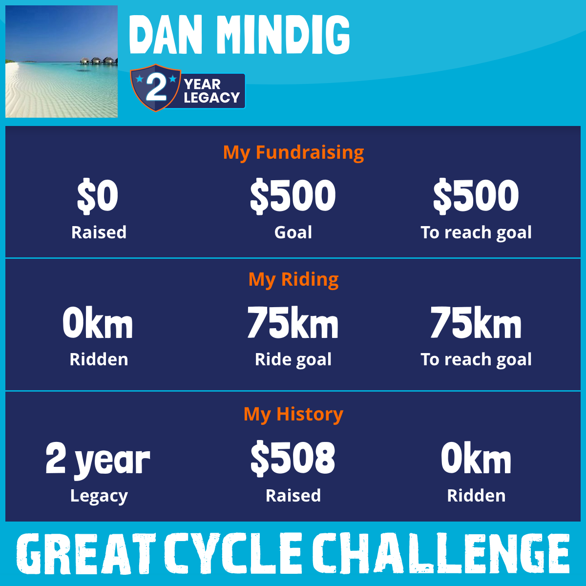 I've Ridden 0.0 km ? My goal is 75 km