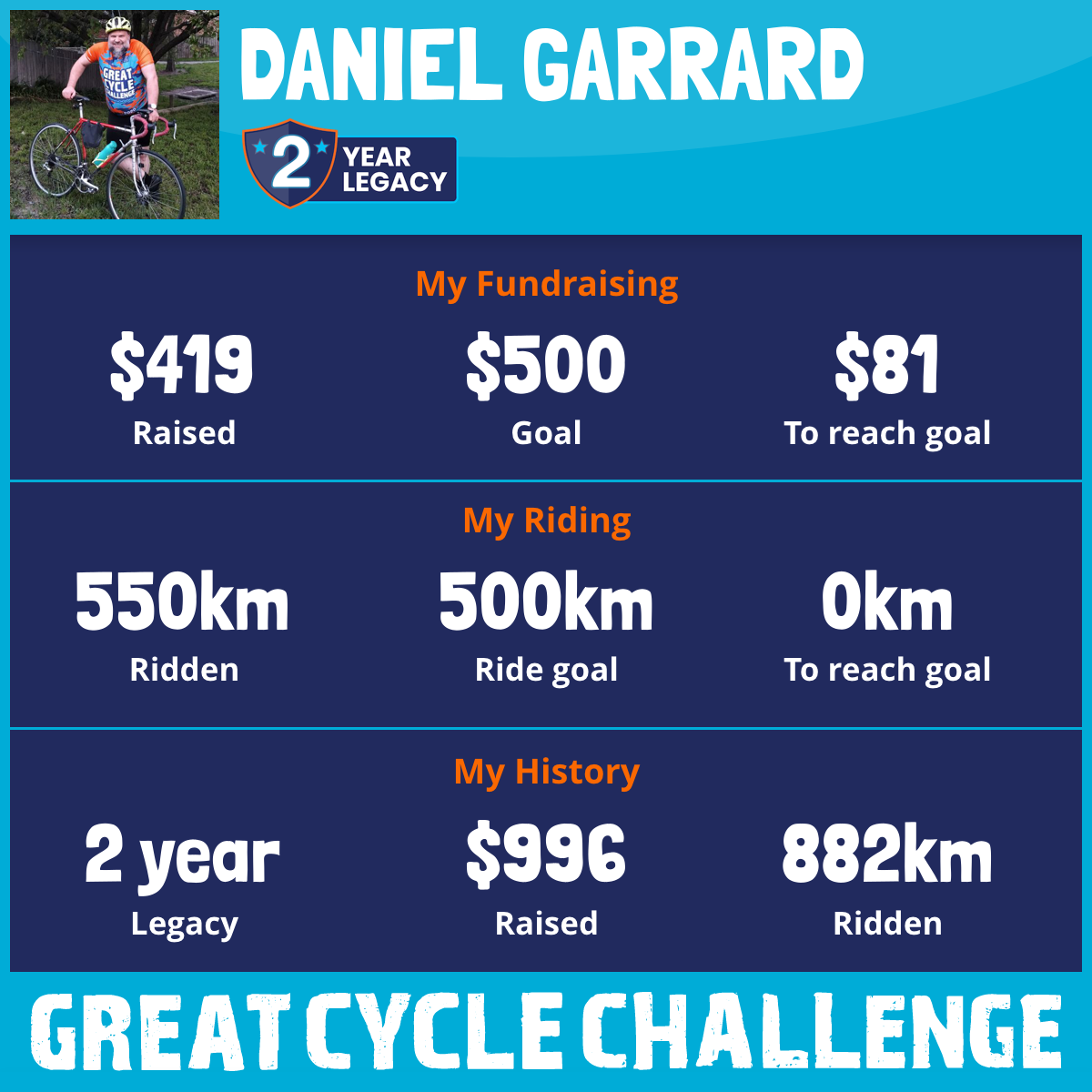550 km Ridden$419 Raised2025