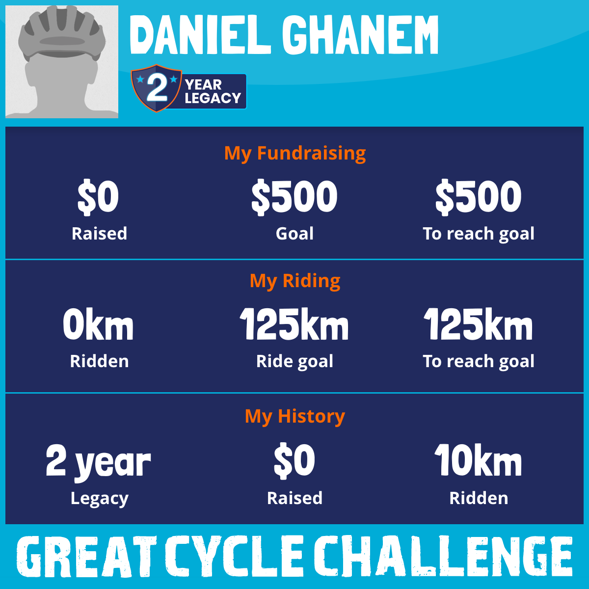 I've Ridden 0.0 km My goal is 125 km