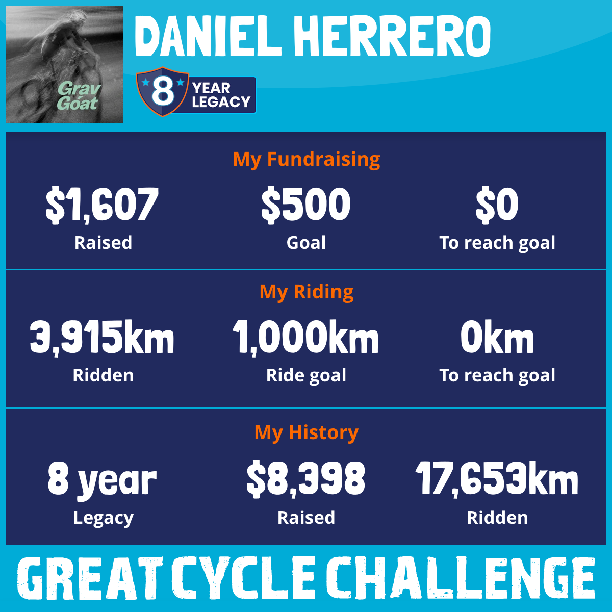 5,196 km Ridden$1,607 Raised2026