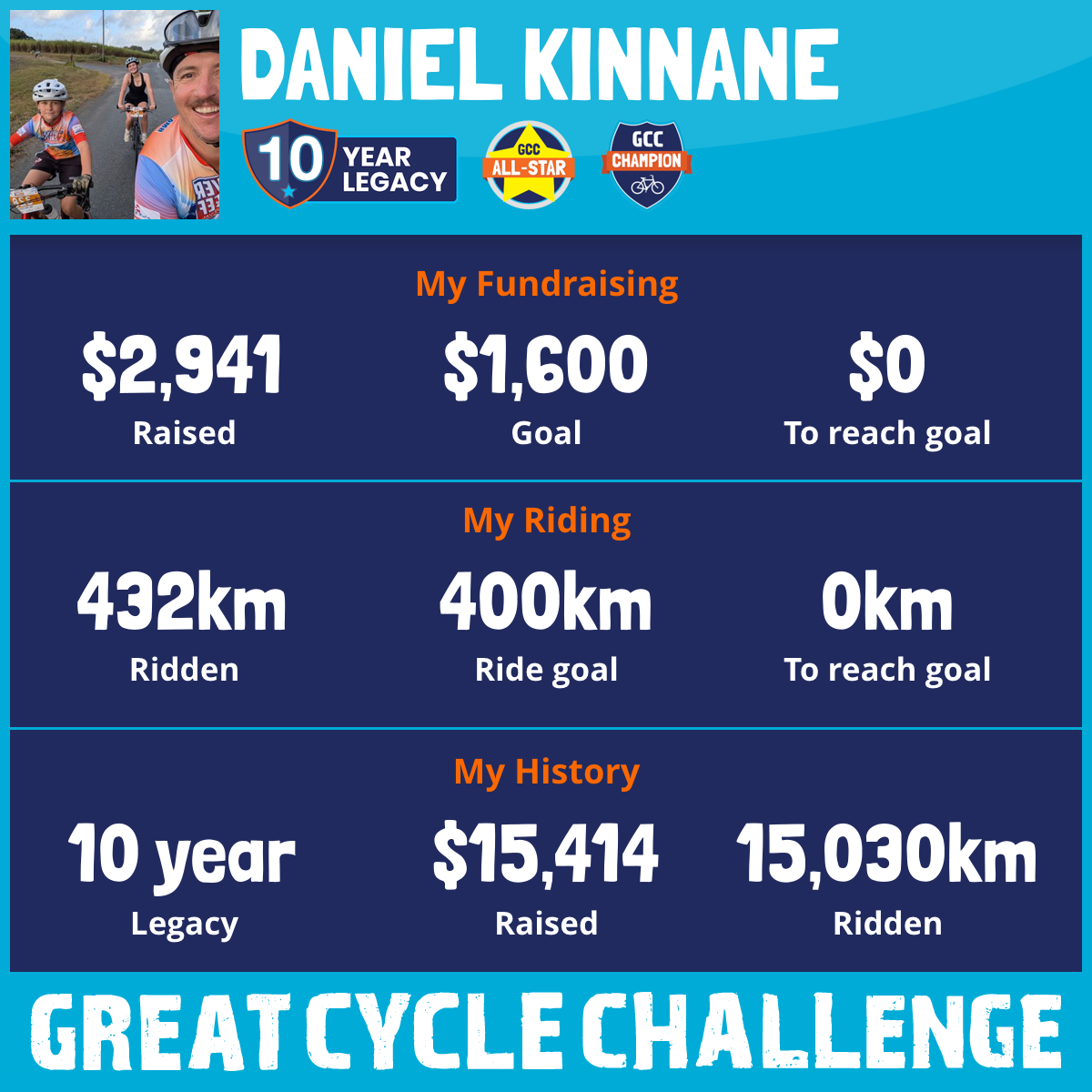 1,114 km Ridden$2,829 Raised2022