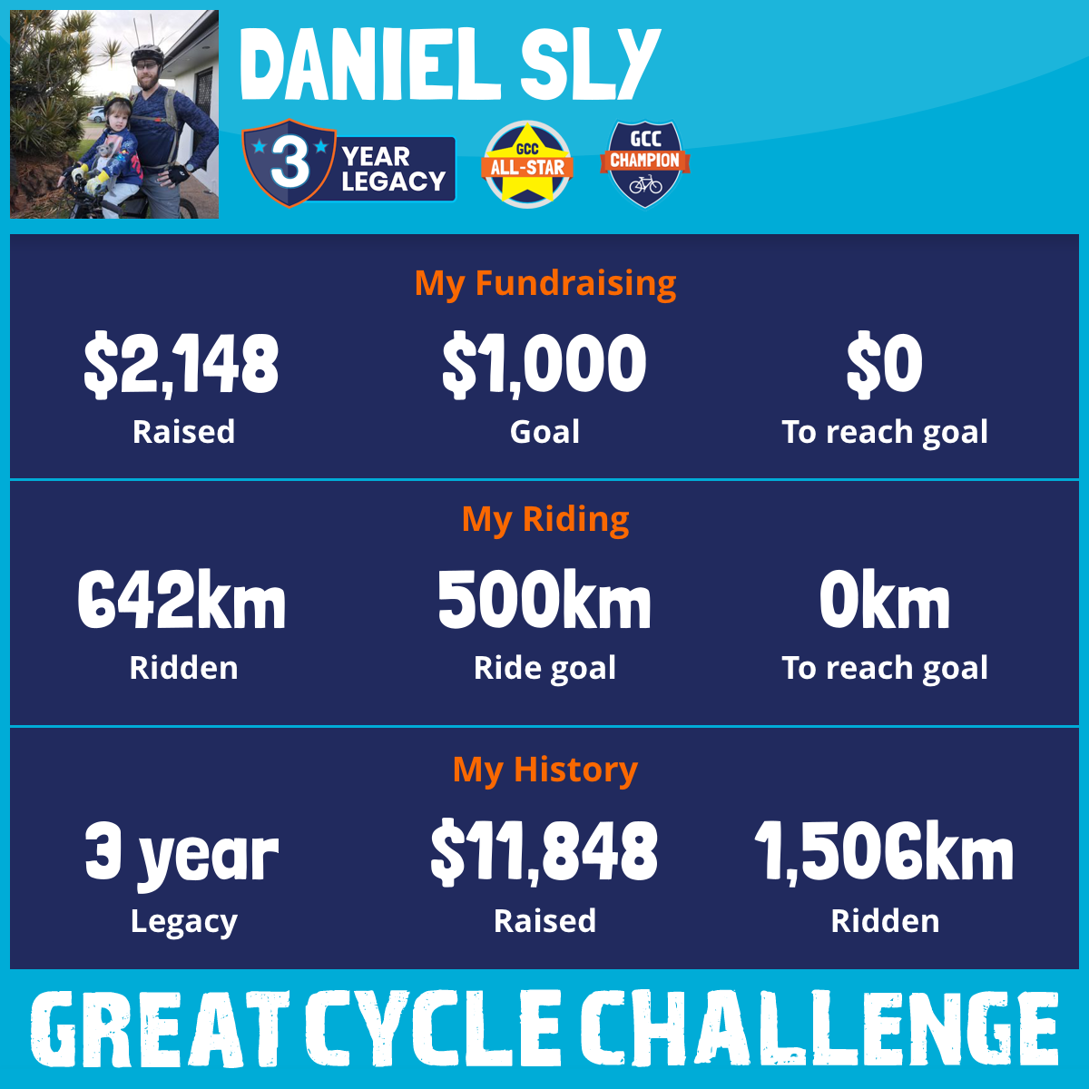 416 km Ridden$6,474 Raised2023