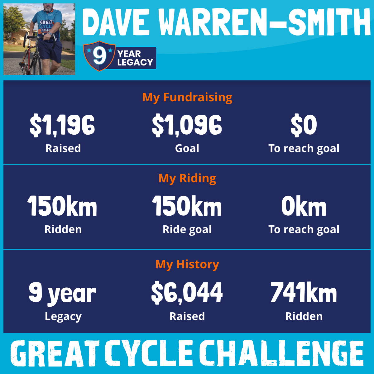 150 km Ridden$1,196 Raised2025