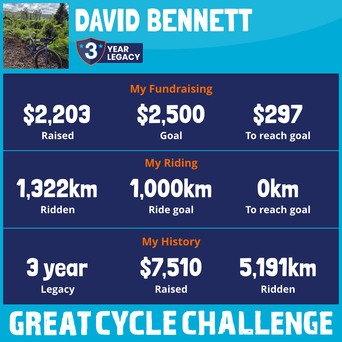 1,322 km Ridden$2,203 Raised2025