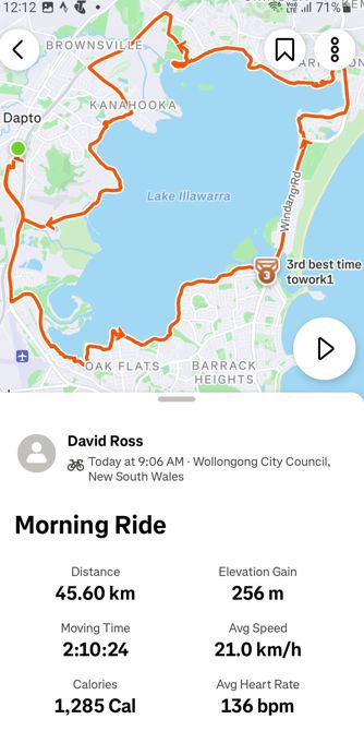 45.6 km ride - Wednesday, October 1, 2025