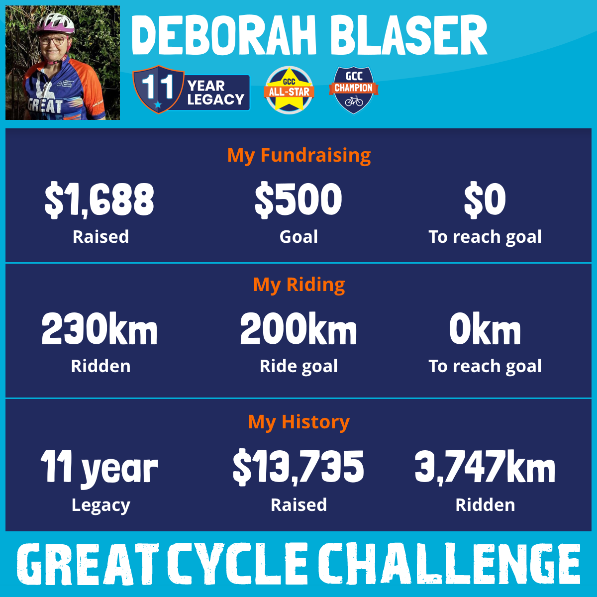 I am riding 200 km for my mum, Brenda. Please sponsor me and support my challenge to fight kids' cancer and save little lives.