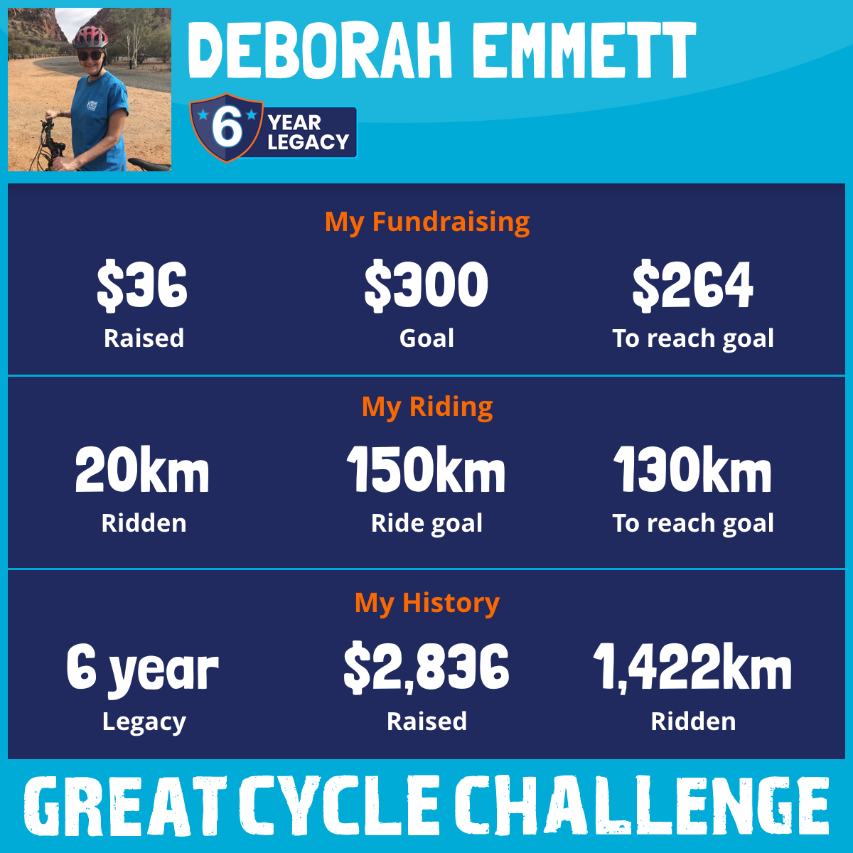 And so I am riding and raising funds to support the Children's Medical Research Institute to continue their work into the prevention, diagnosis, treatment and finding a cure for childhood cancer.