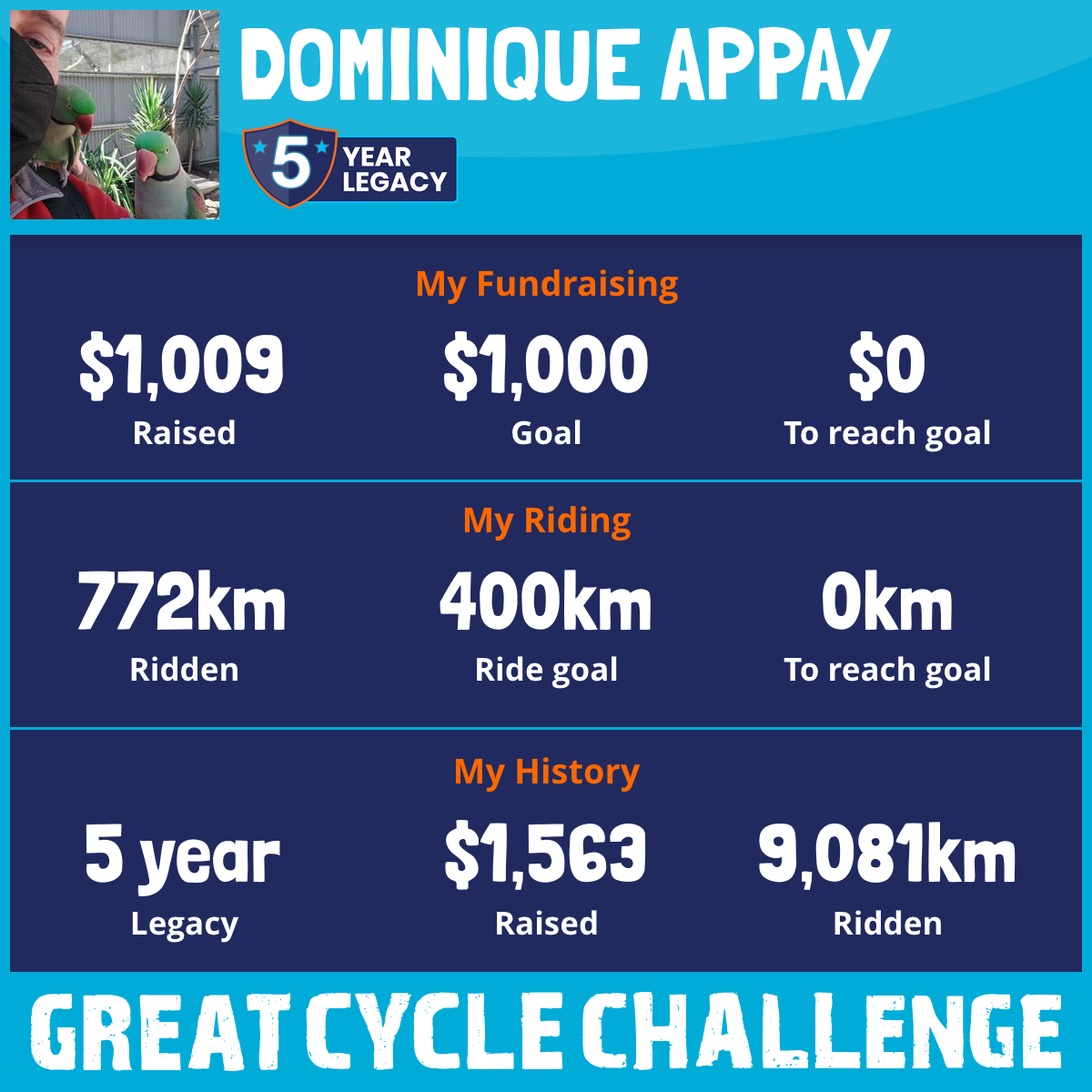 And so I am riding and raising funds to support the Children's Medical Research Institute to continue their work into the prevention, diagnosis, treatment and finding a cure for childhood cancer.
