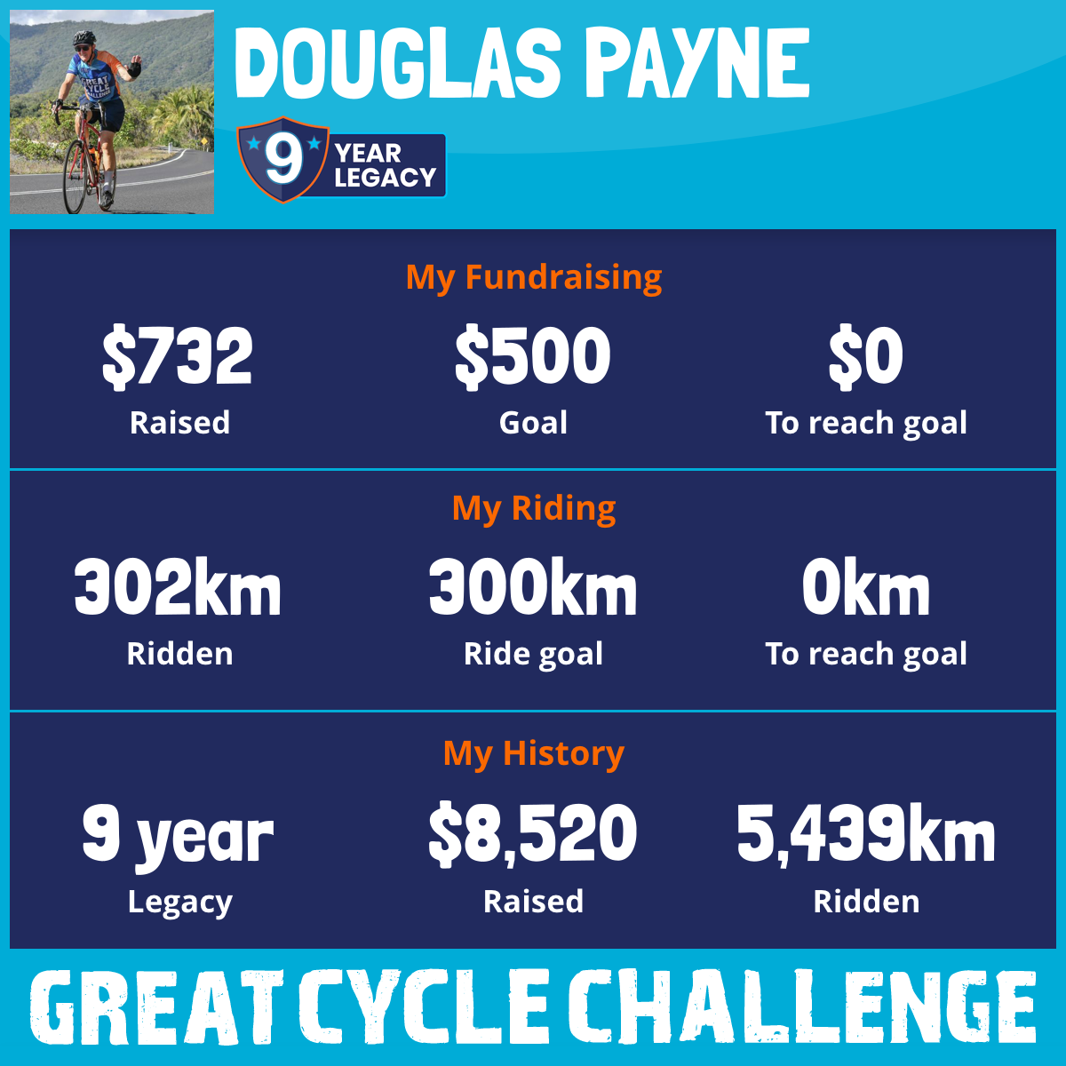 And so I am riding and raising funds to support the Children's Medical Research Institute to continue their work into the prevention, diagnosis, treatment and finding a cure for childhood cancer. Since 2016 I have ridden over 5,000 klms and raised over $7,800 to support this research.