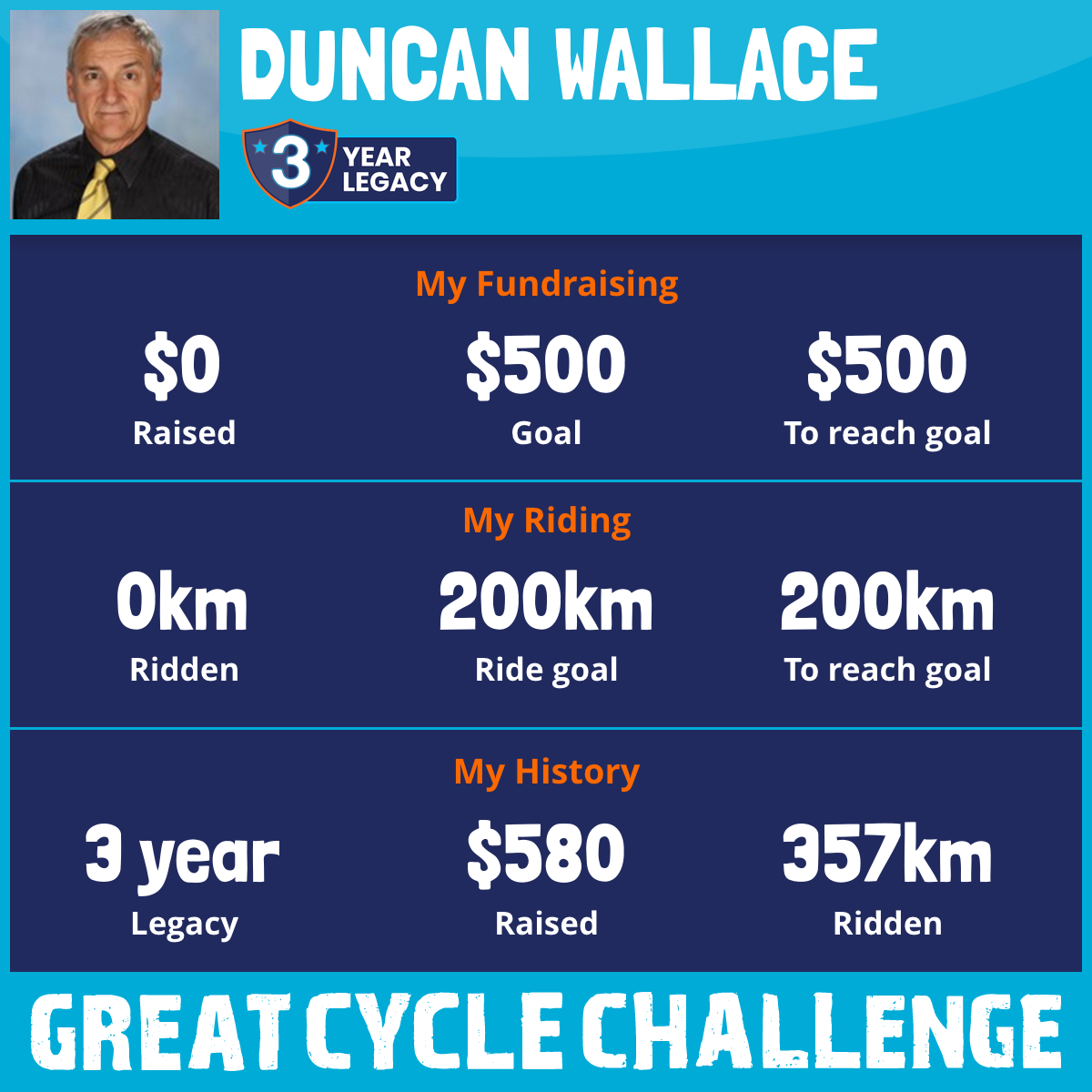 I am riding 200 km in memory of Glyn Davies & Jim Wallace. Please sponsor me and support my challenge to fight kids' cancer and save little lives.