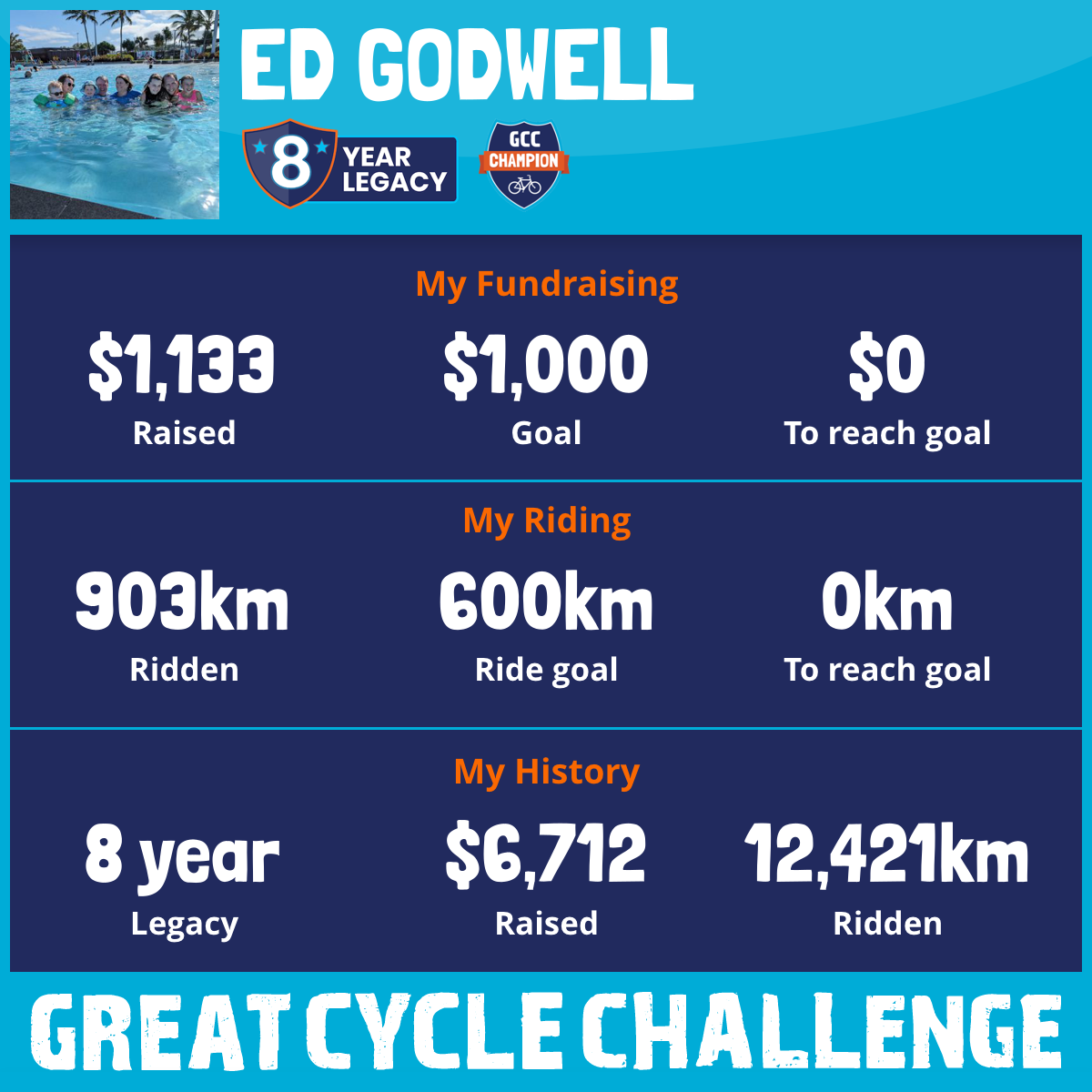 931 km Ridden$1,133 Raised2026