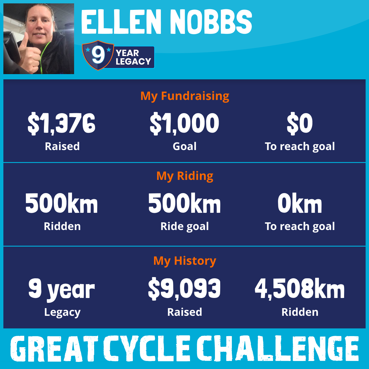 500 km Ridden$1,376 Raised2026