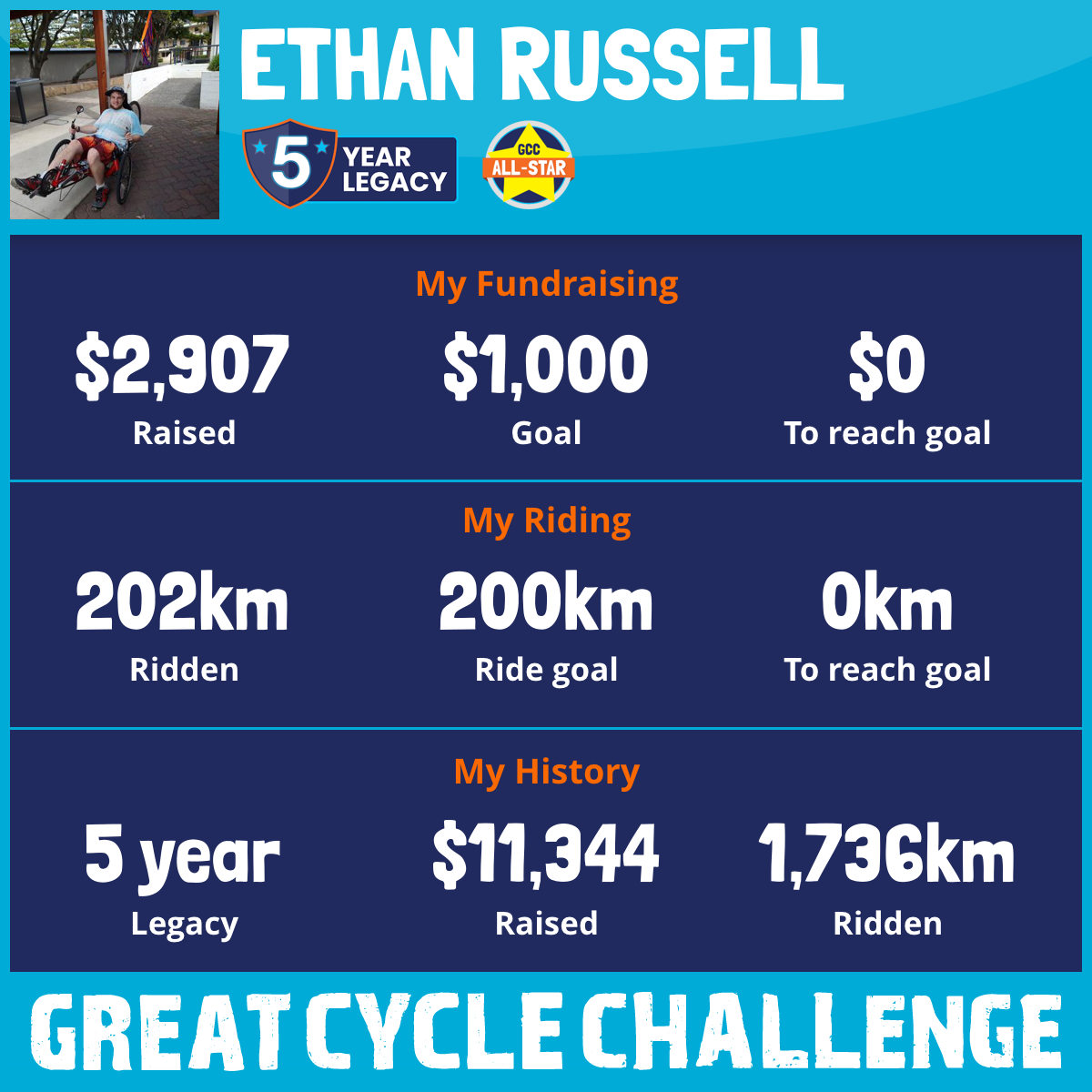 202 km Ridden$2,907 Raised2026