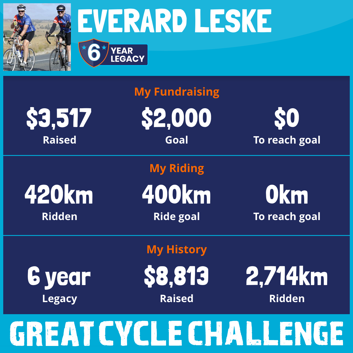420 km Ridden$3,517 Raised2026