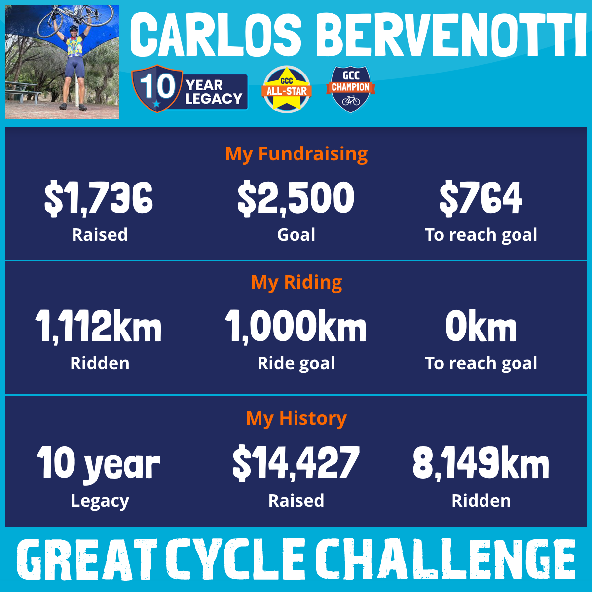 1,330 km Ridden$1,788 Raised2026