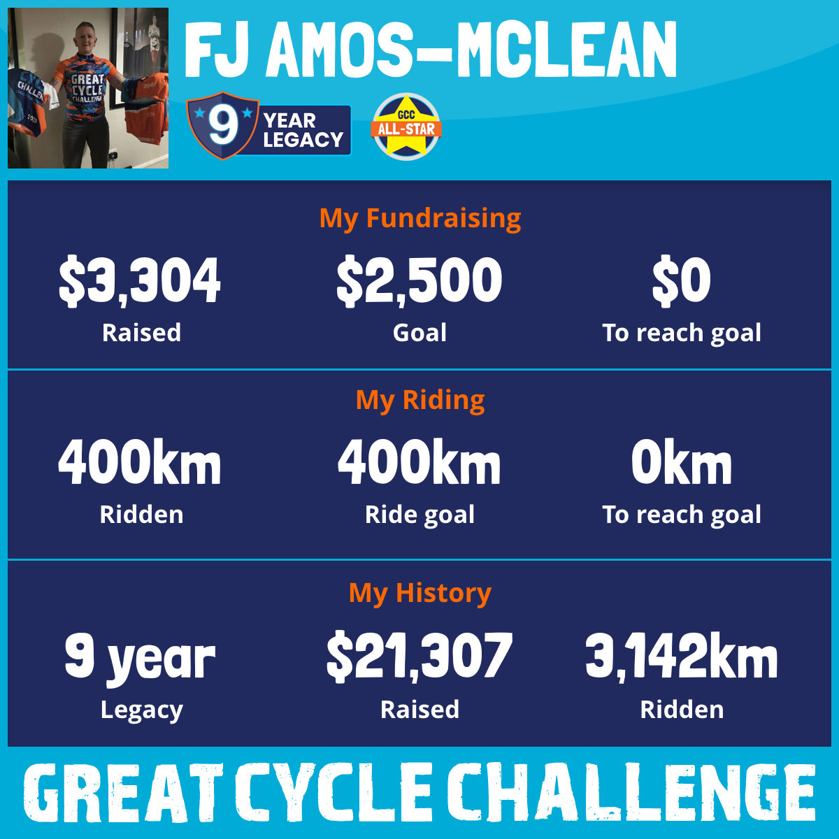 400 km Ridden$3,304 Raised2026