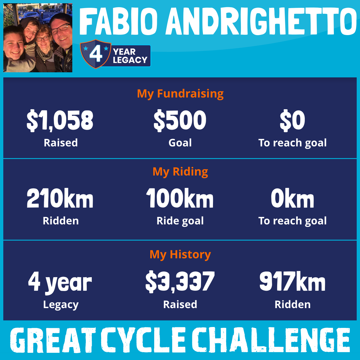 210 km Ridden$1,058 Raised2025