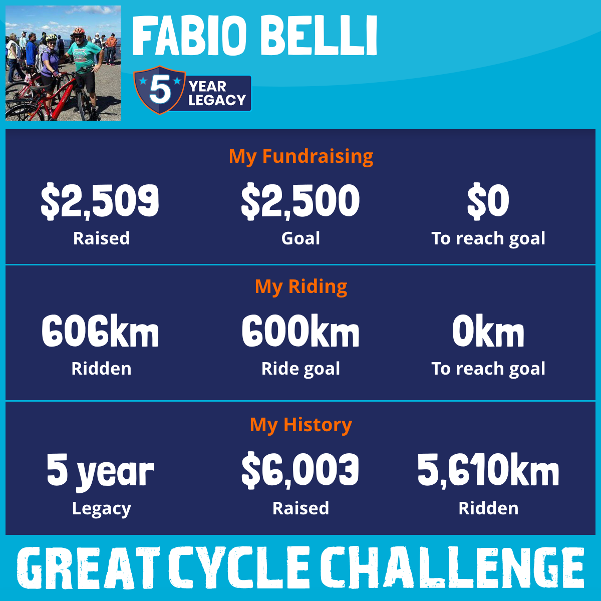 660 km Ridden$2,509 Raised2026