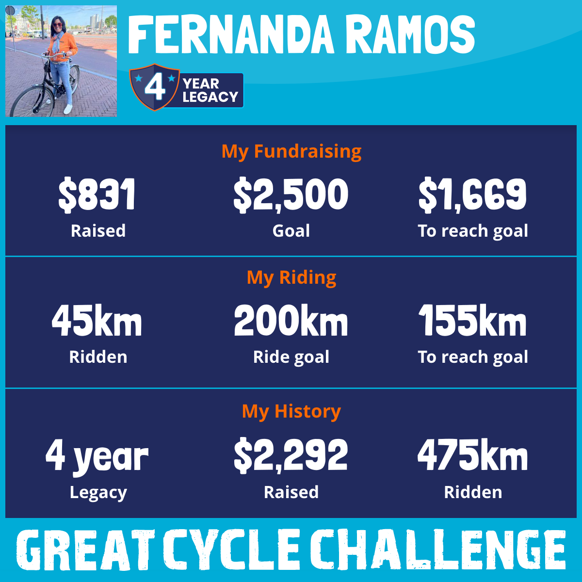 51 km Ridden$831 Raised2026