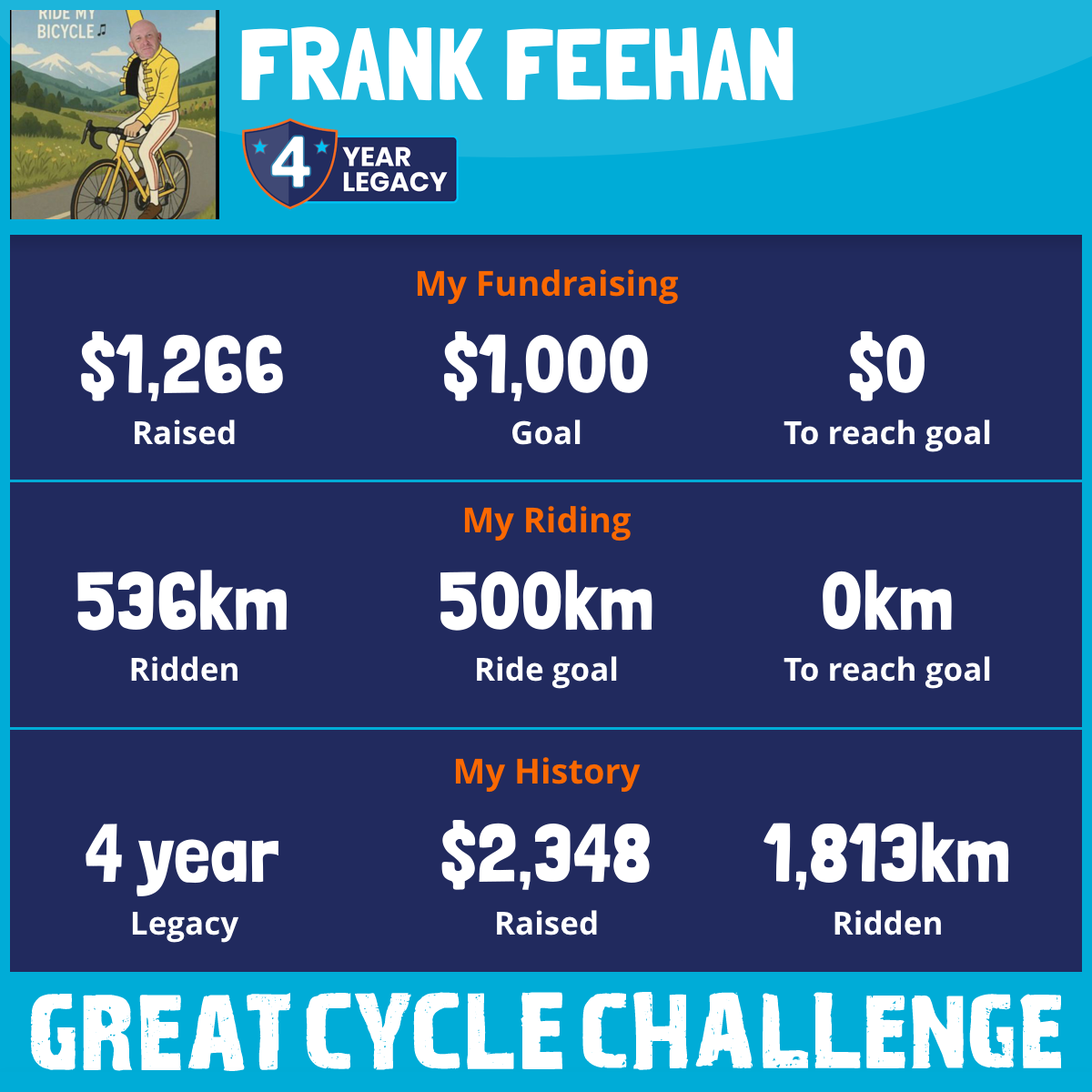 536 km Ridden$1,266 Raised2025