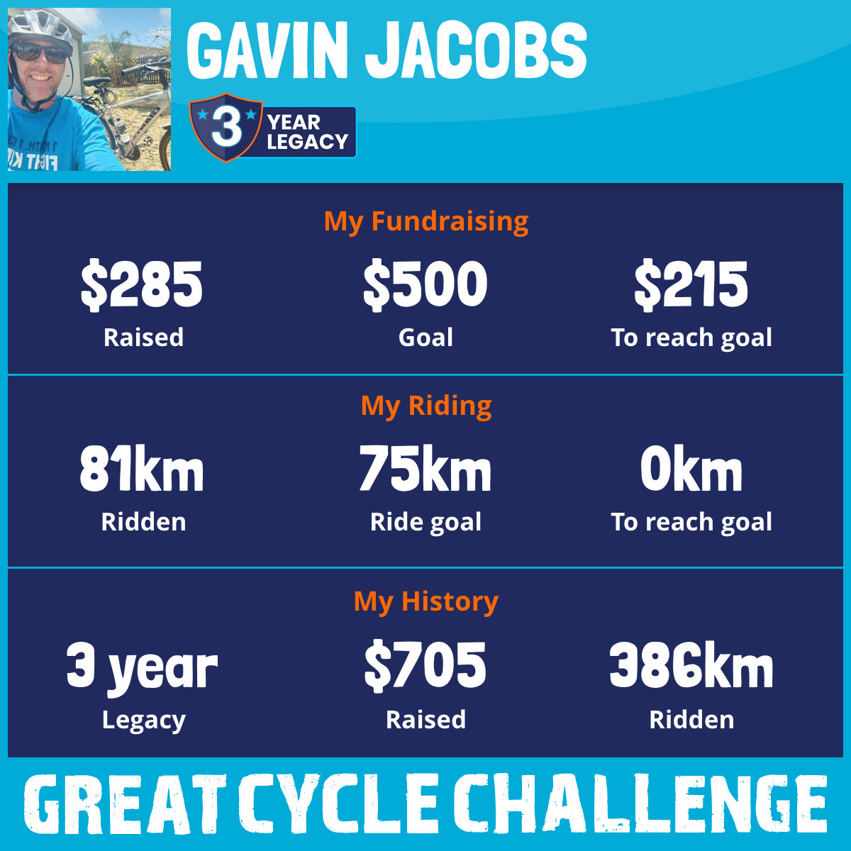 81 km Ridden$285 Raised2025