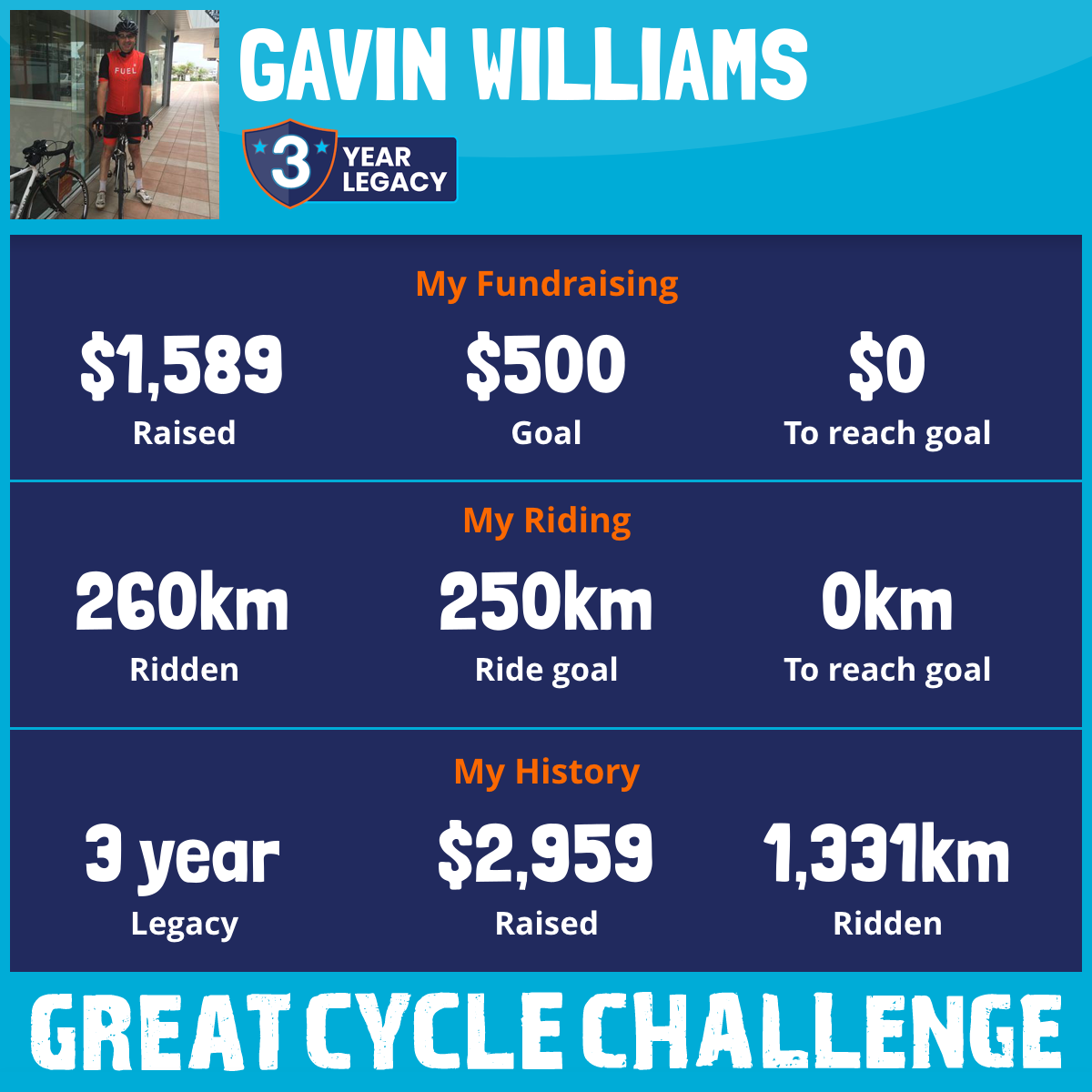 260 km Ridden$1,589 Raised2026